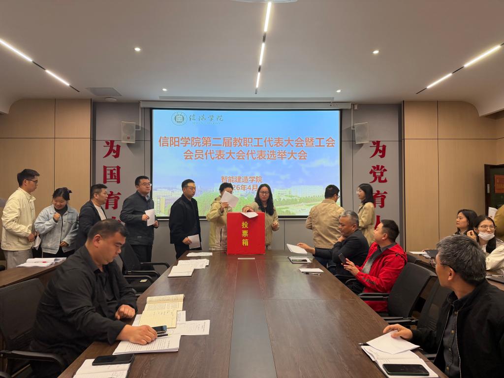 为深入推进民主管理,凝聚发展合力,4月15日,智能建造学院在理工楼112会议室召开信阳学院第二届教职工代表大会暨工会会员代表大会第一次会议代表选举大会。学院党总支书记兼工会主席徐远东及全体教工参加会议,分工会委员唐辉主持了会议。