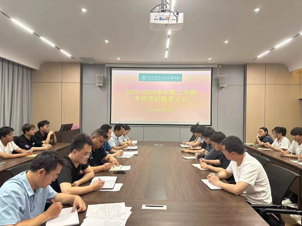 为进一步加强土木工程学院考风考纪教育,营造公平公正的考试环境,6月13日下午,土木工程学院在理工楼112会议室召开2023-2024学年第二学期考风考纪教育大会。土木工程学院名誉院长、党总支书记徐远东、教学副院长杨子泉出席了会议,学院班子成员、团总支书记徐飞,院学生会代表及各年级各班班长、学习委员参加了会议。会议由徐远东主持。