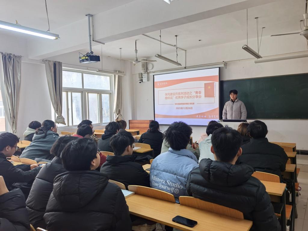 为充分发挥优秀学子的榜样引领作用,营造勤学笃行的良好学风,12月26日,土木工程学院在各班辅导员的组织下成功举办了学风建设月系列活动之“青春榜样说”优秀成长学子分享会。三位在不同领域表现突出的学生代表巡回宣讲,与我院24级、25级学生分享了他们的成长经历与心得体会。