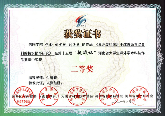 实验教学团队指导土木工程专业学生在全国大学生结构设计竞赛、河南省大学生结构设计竞赛中共取得国家级奖项3项,其中优秀组织奖1项,二等奖1项,三等奖1项;省级奖16项,其中优秀组织奖1项,最佳结构分析奖3项,最佳制作奖2项,特等奖1项,一等奖2项,二等奖2项,三等奖3项,优秀奖2项。