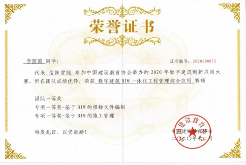 本实验教学团队指导工程造价专业学生在“全国数字建筑创新应用大赛”的比赛中获得国家级和省级奖项共14项,其中一等奖9项,二等奖2项,三等奖3项。