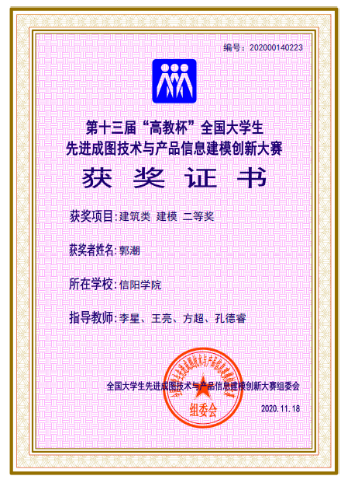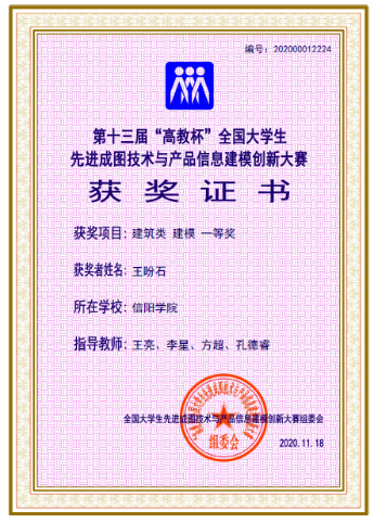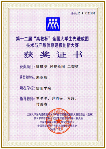 本实验教学团队指导土木工程专业学生在“高教杯”全国大学生先进成图技术与产品信息建模创新大赛中共获得国家级奖项47项,其中一等奖3项,二等奖25项,三等奖19项。